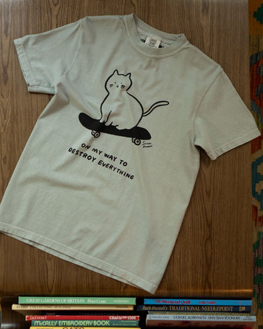 - Printed with eco-friendly, soft to the touch water-based ink on a bay (muted minty green) coloured 100% ringspun heavyweight cotton Comfort Colors® tee