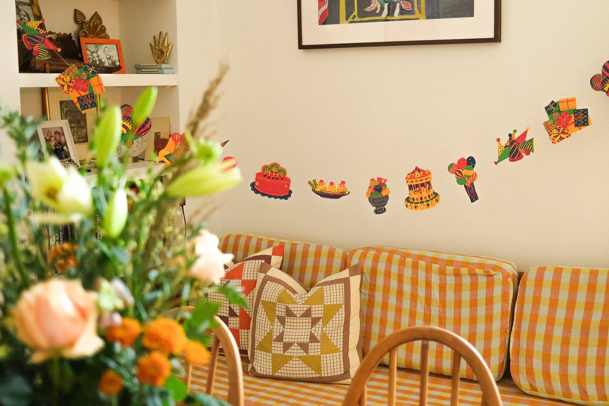 A lively parade of whimsical shapes, bursting with balloons, colour, and birthday cheer are strung along this three metre celebration garland.