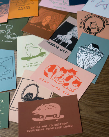 Each postcard is professionally printed on 16pt stock, with matte coating on the artwork side and left blank and uncoated on the reverse for easy message-writing.