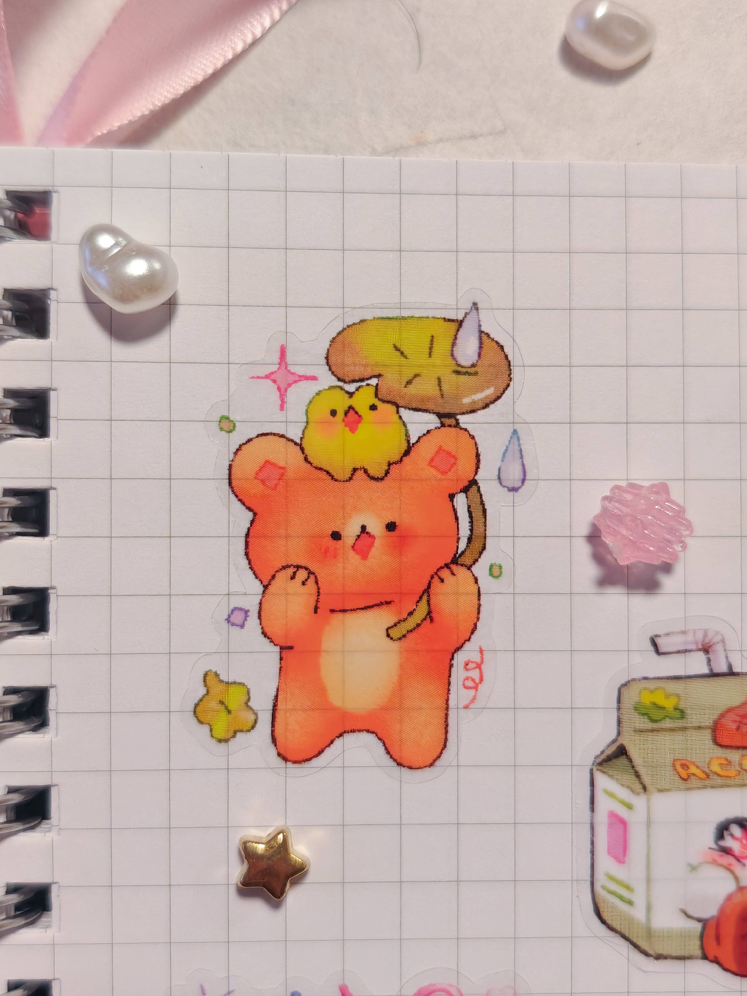 Cette planche présente une collection de personnages super mignons, avec des thèmes de snacks intégrés. Ces autocollants prédécoupés sont parfaits pour décorer carnets de croquis, journaux, calendriers, lettres, bouteilles d’eau, et plus encore. Ils sont idéaux pour le bricolage et pour laisser libre cours à votre imagination ! Fabriqués en vinyle transparent brillant, imperméable et de qualité supérieure.