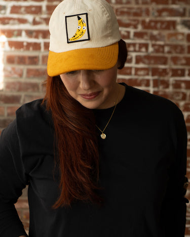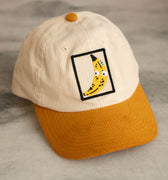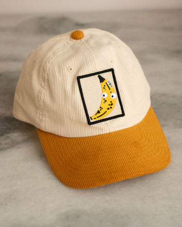 Our favourite banana guy on the cutest cream and golden butterscotch cap.