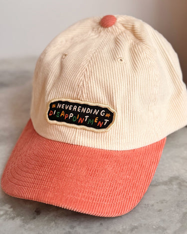 Perpetual, infinite, endless disappointment: our embroidered patch finds itself on the cutest two-tone caps.