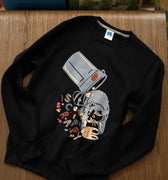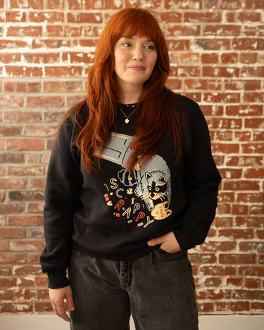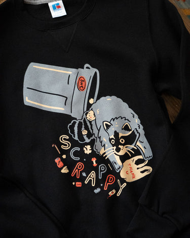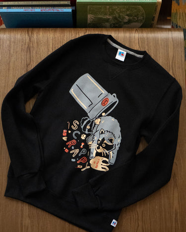 This raccoon friend is printed in 3 colours of water-based ink on the front of our favourite Russell Athletic 'Dri-Power®' sweatshirt in black: these are made of mid-weight 9 oz fleece, have classic vintage styling with a tiny rib to the knit, V-notch at the crewneck and flattering gusset at each side, but with modern moisture-wicking technology that keeps you warm and toasty. Russell Athletic make some of my most cherished vintage tees (they've been at it since 1902!) and their clothing truly stands the test of time.